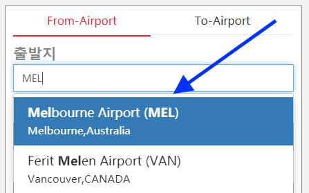 ☞ 픽업지 -> 멜버른 도시 이름 Melbourne 혹은 공항코드 MEL 복사 붙여넣기
