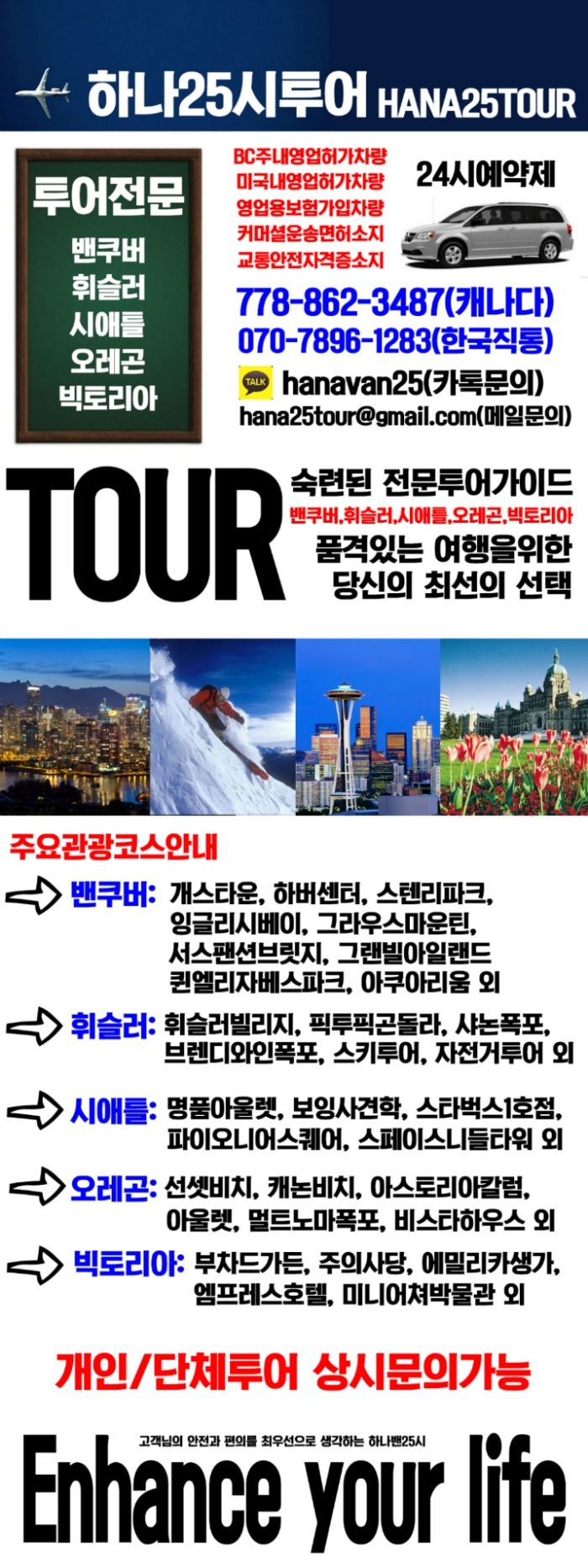 ● 밴쿠버공항에서 시내까지 새벽/심야, 개인/단체 픽업OK
