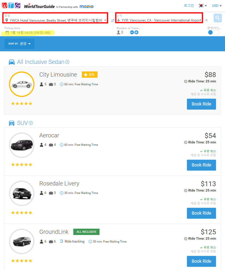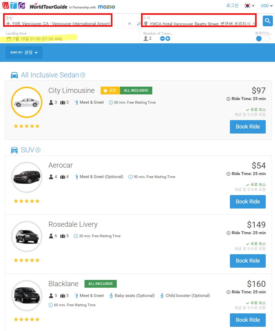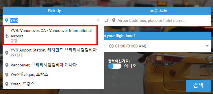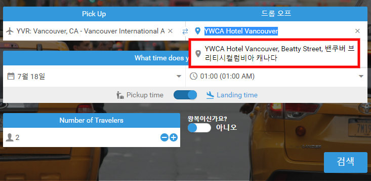 ★ 밴쿠버 공항 픽업 -> 호텔 이동시 검색결과 (심야 1시) ★