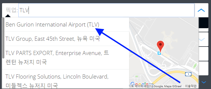 ☞ 텔아비브 Tel Aviv 공항코드 TLV 입력